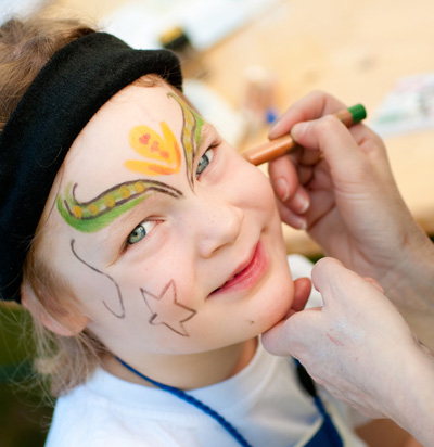 Kindern bieten wir bei örtlichen Veranstaltungen ein kostenloses Kinderschminken